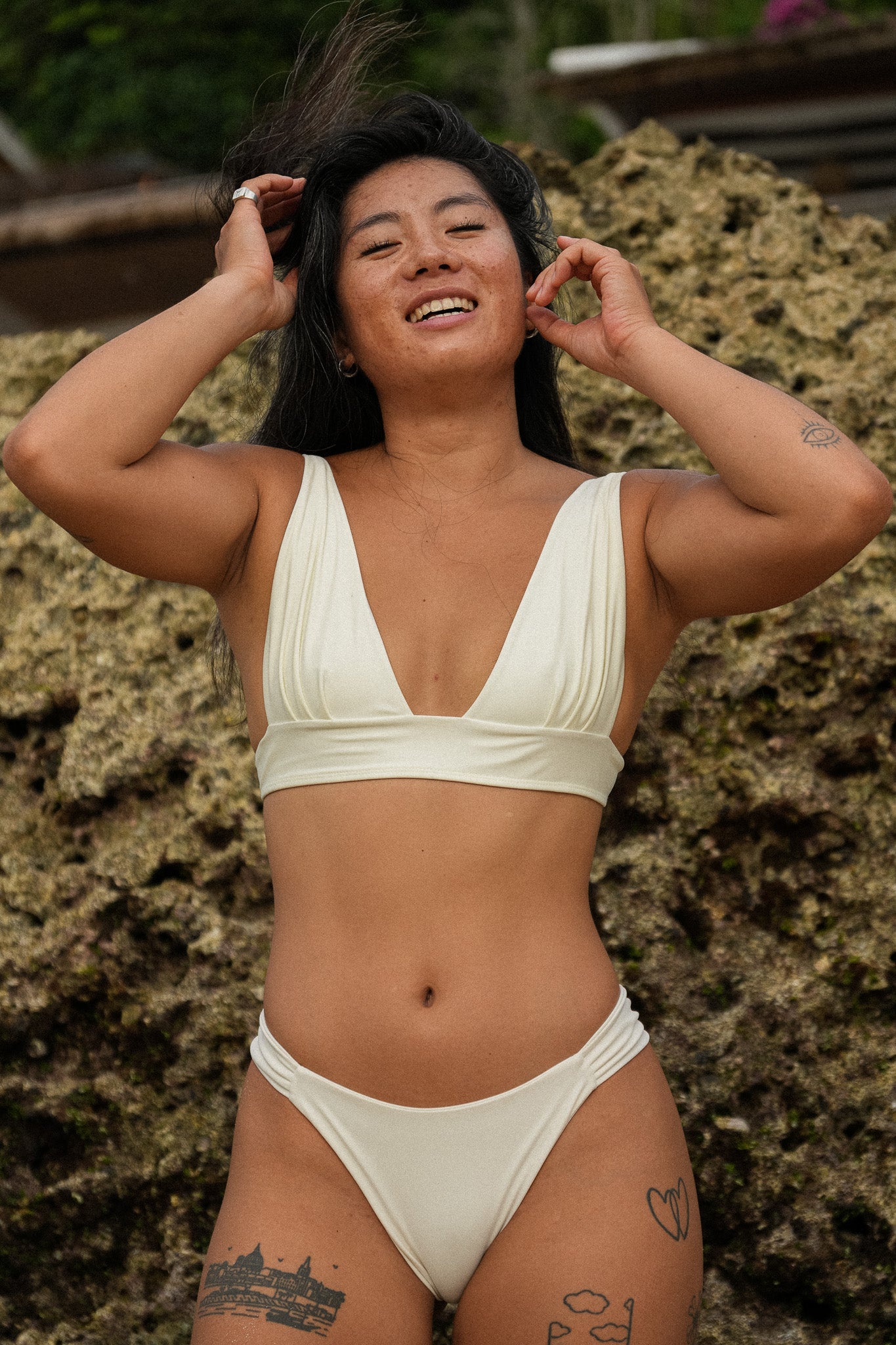 Avec sa coupe en triangle foulard, ce haut de maillot de bain dévoile un décolleté en V.